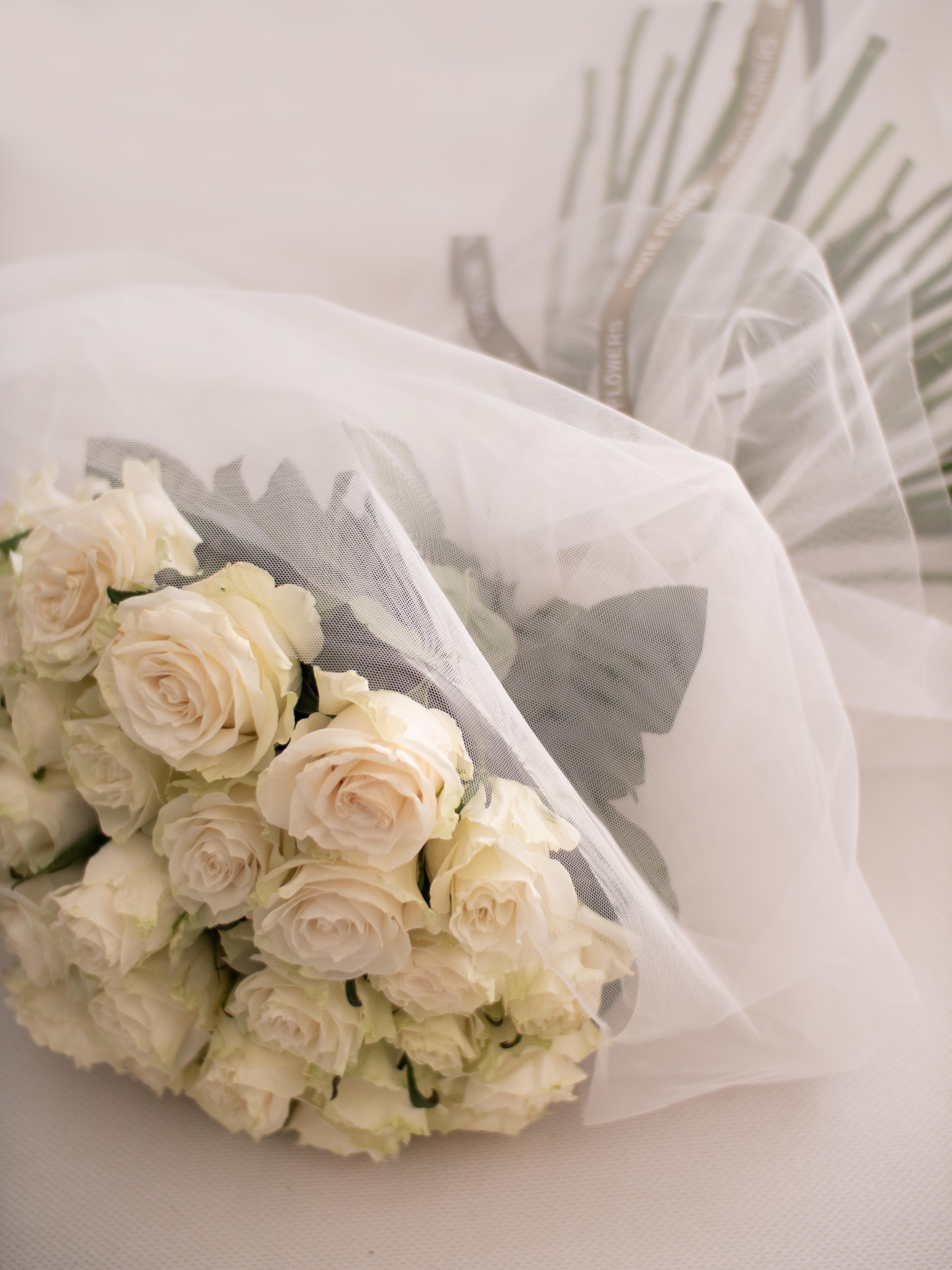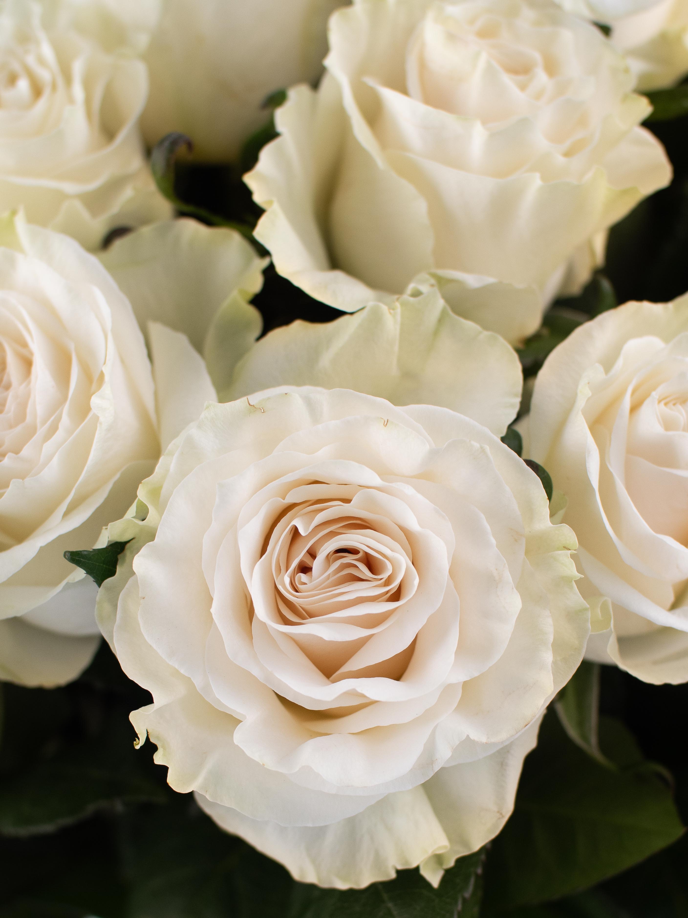 Ramo de rosas blancas. Puedes escoger el número de rosas que prefieras, hasta un máximo de 100, para crear tu ramo perfecto.