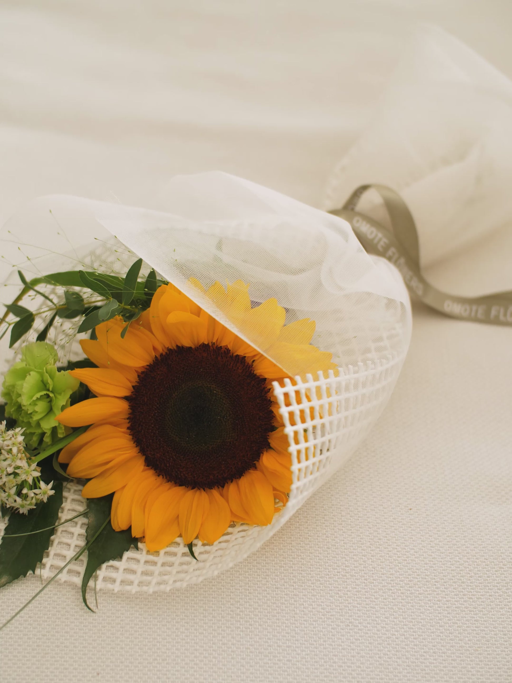 Para que tu ramo llegue en perfectas condiciones, envolvemos los tallos con un paño húmedo especialmente diseñado para mantener las flores frescas e hidratadas durante el transporte.