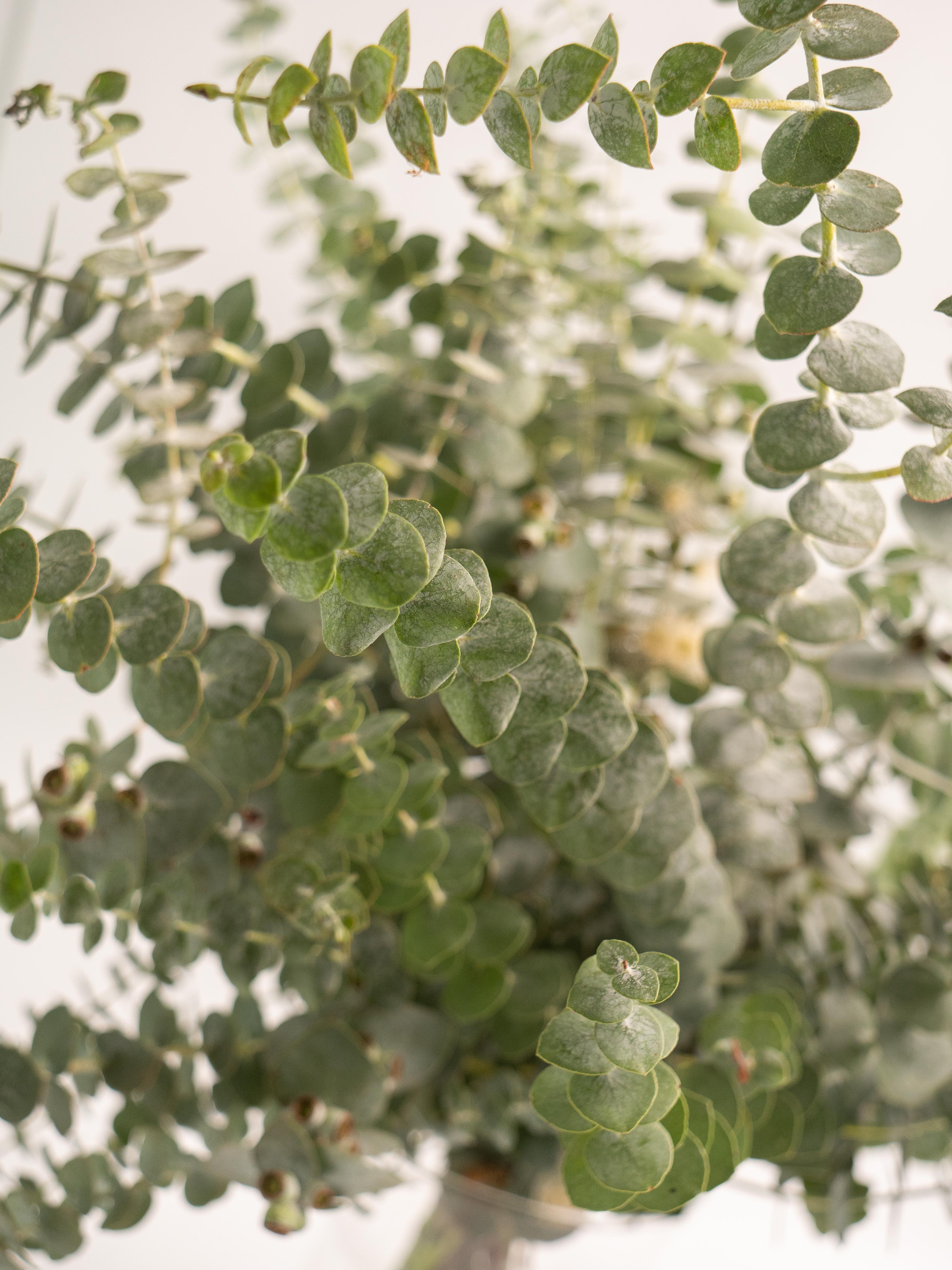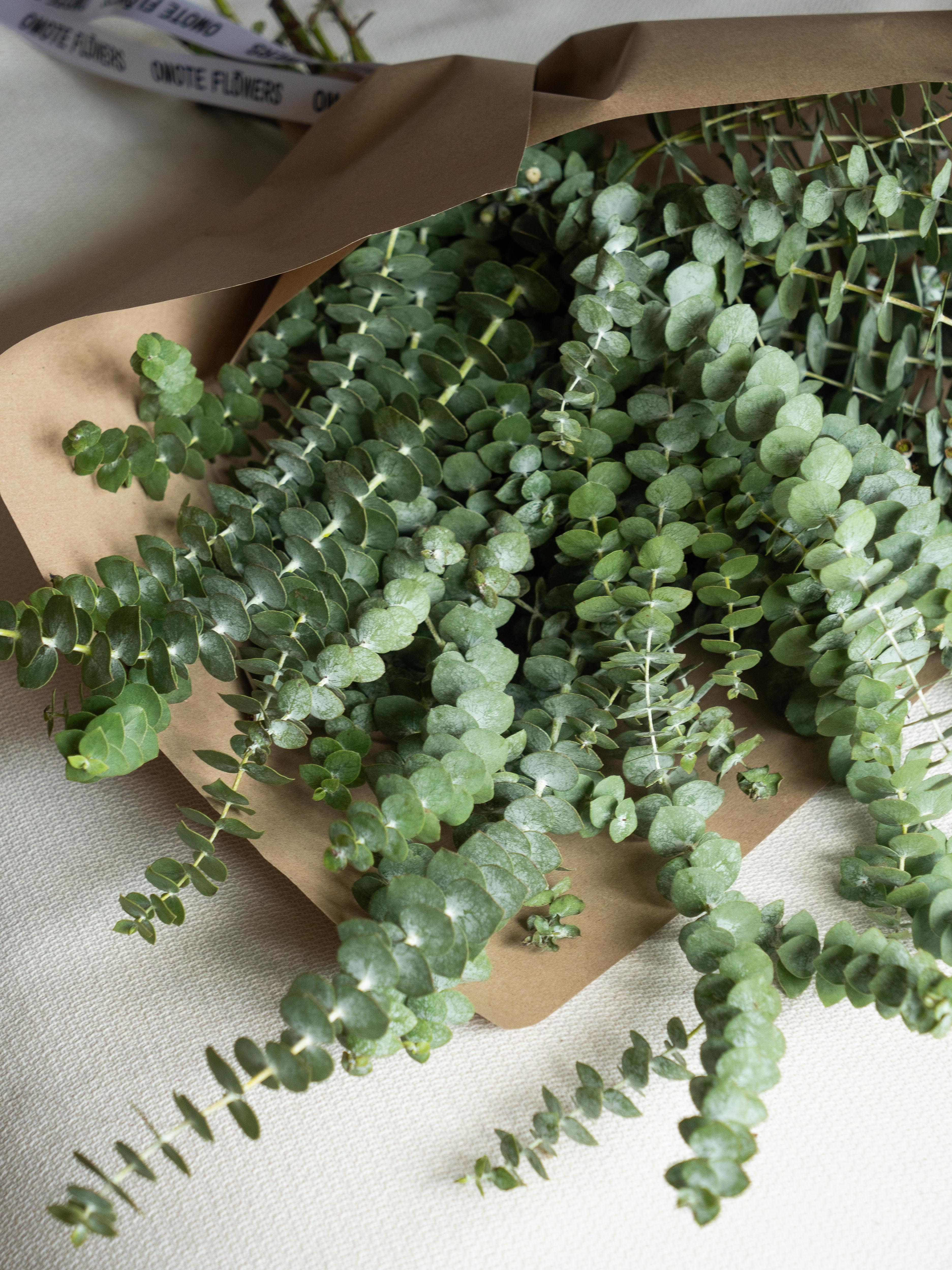 El eucalipto gunni es uno de los verdes más apreciados. Tiene la hoja un poco más pequeña que el eucalipto cinerea. Su aroma fresco y su aspecto elegante lo convierten en una opción ideal para decorar cualquier espacio. Además, es increíblemente duradero, ya que se seca con mucha facilidad, manteniendo su belleza durante meses.