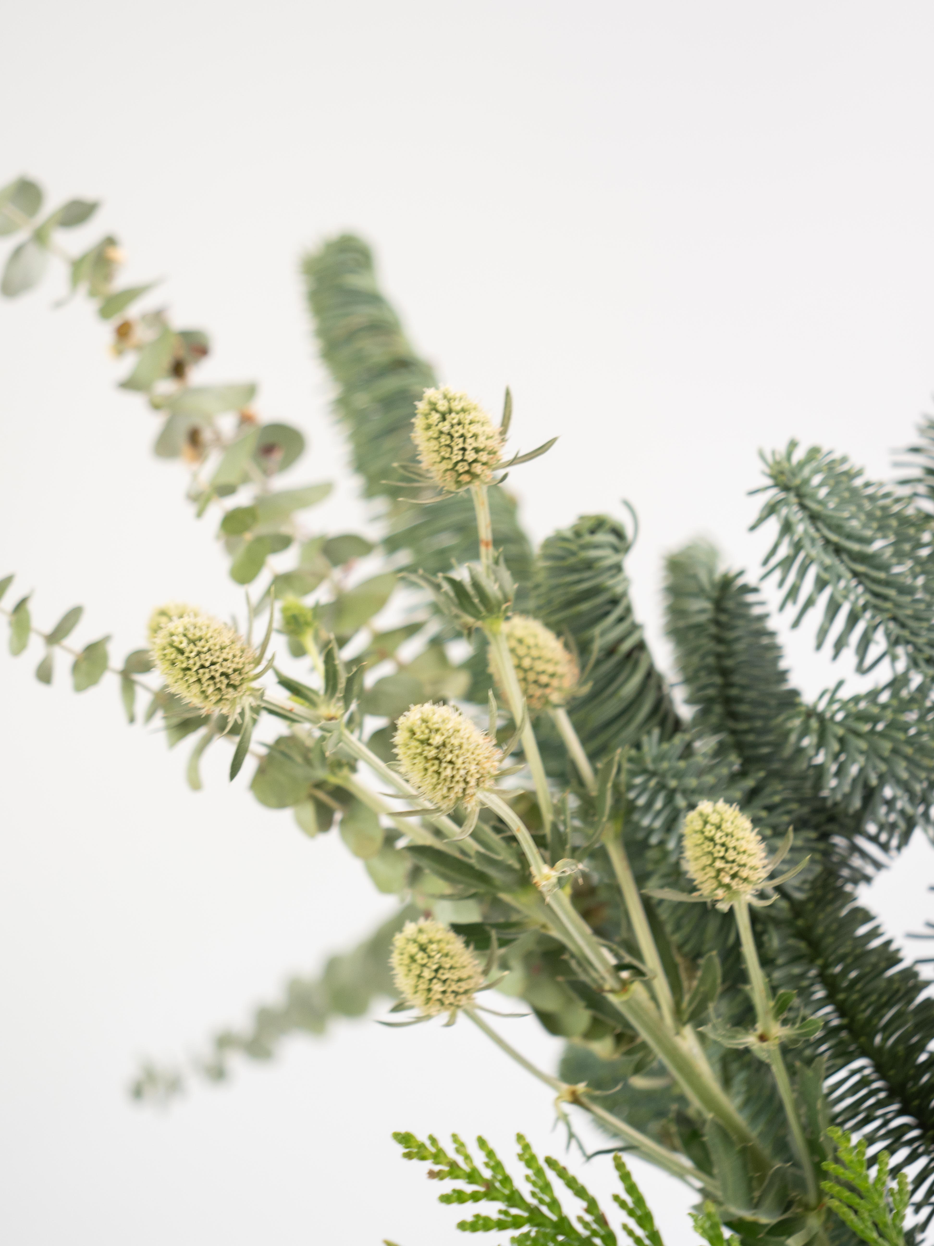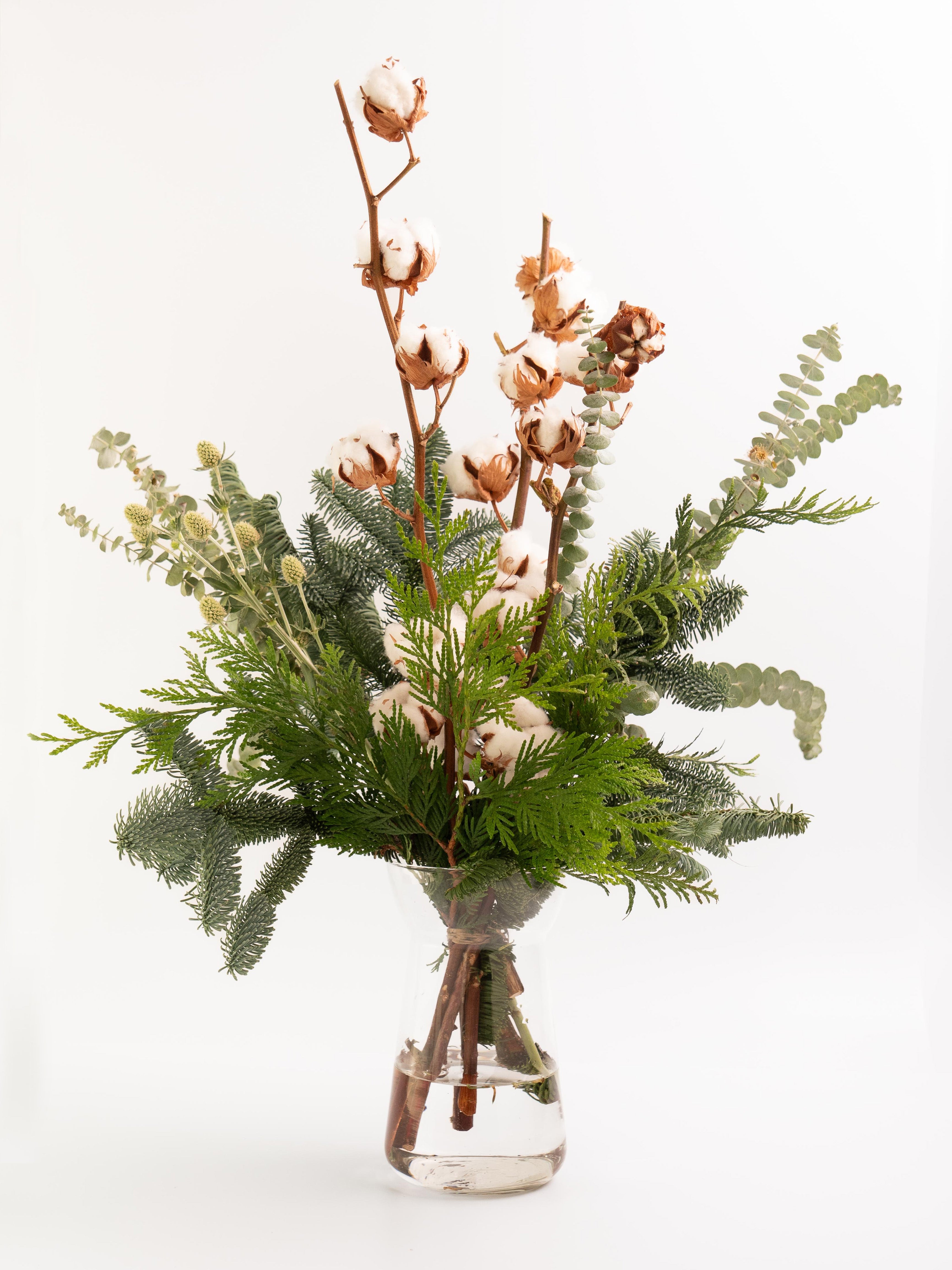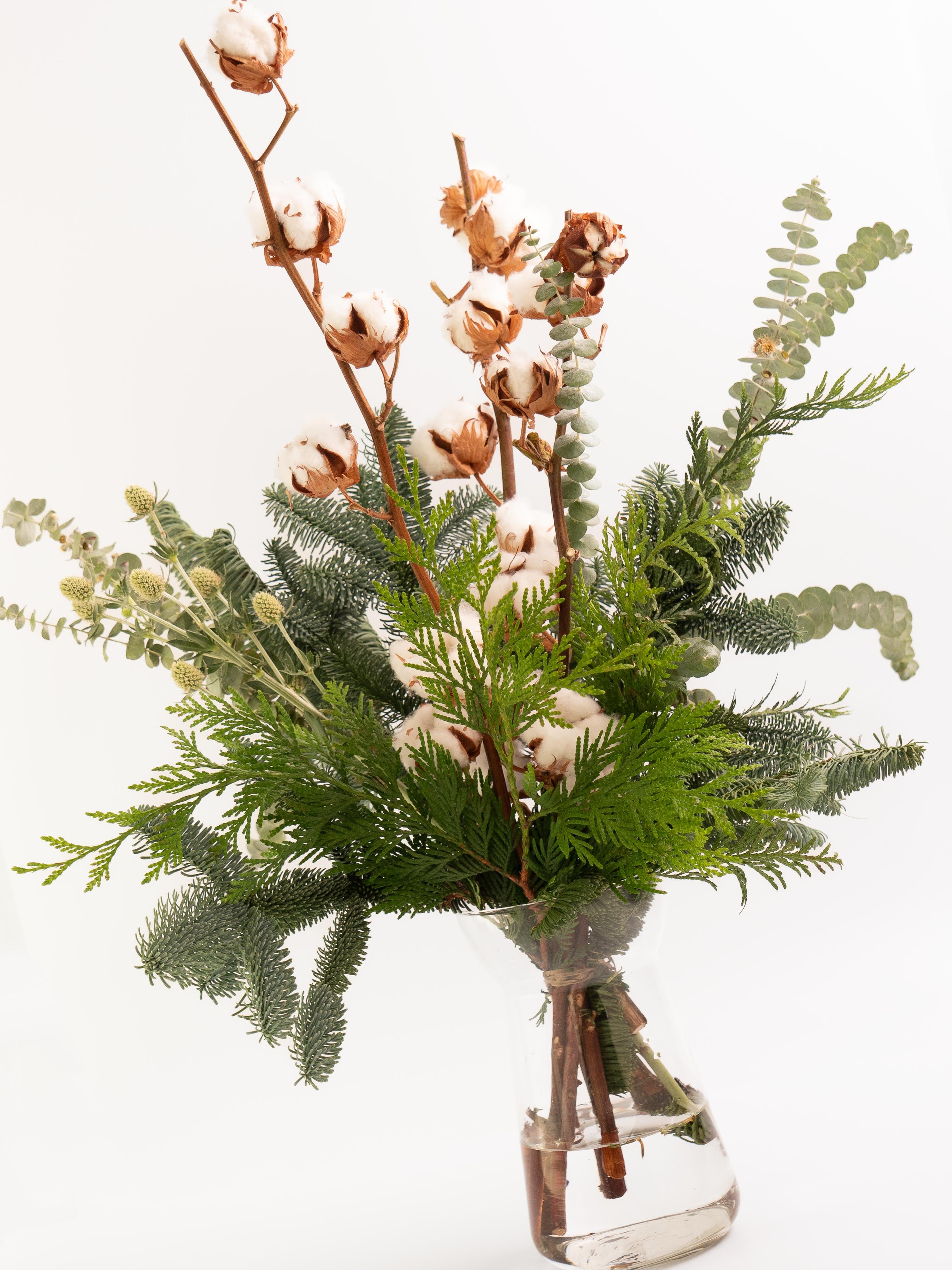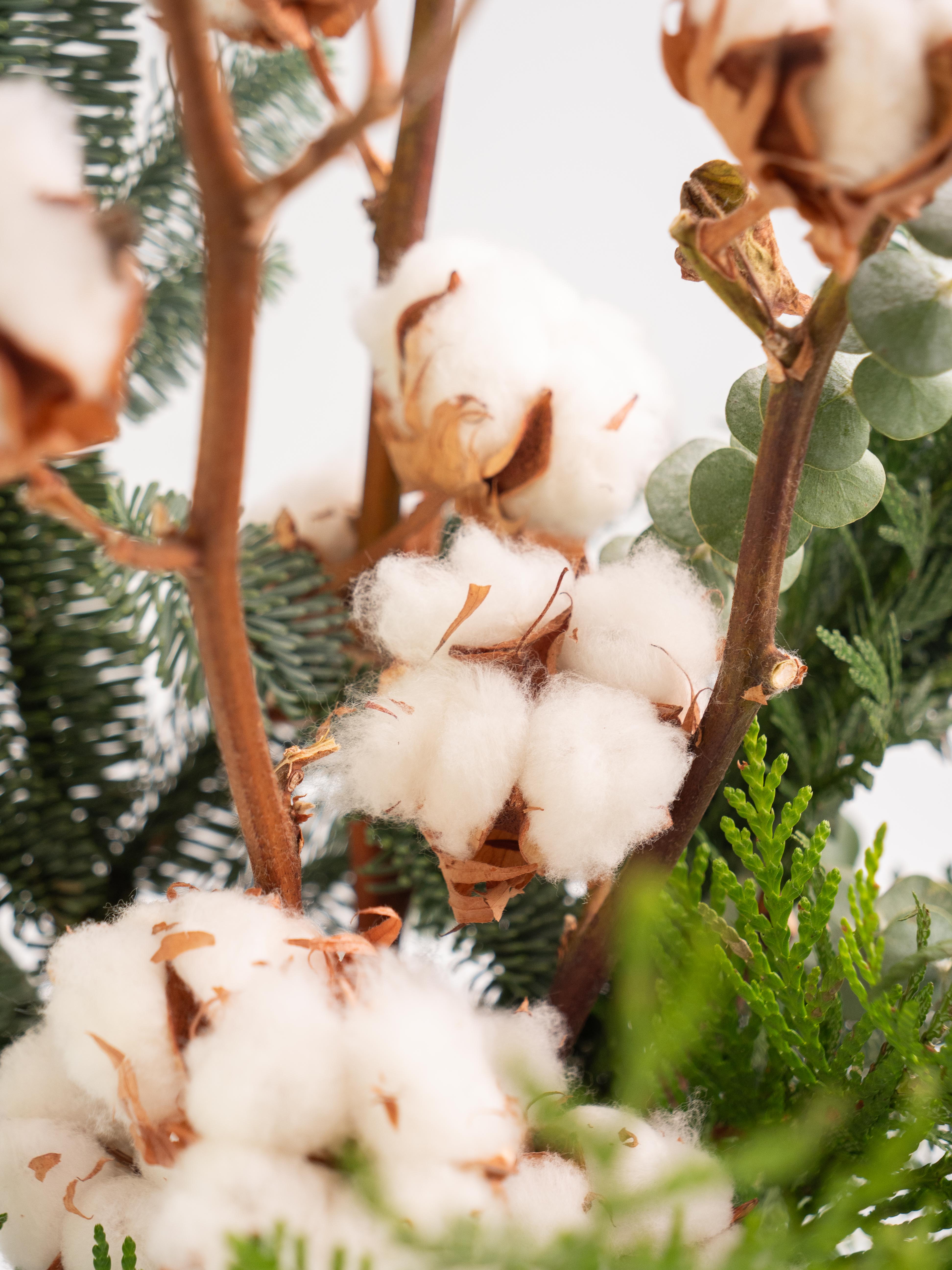 Mix de verdes naturales navideños, ideal para decorar el hogar en estas fechas. Son muy duraderos y se secan fácilmente, por lo que podrás disfrutarlos durante mucho tiempo. Este conjunto incluye algodón, eucalipto, abeto, tuya y otros elementos naturales de temporada.